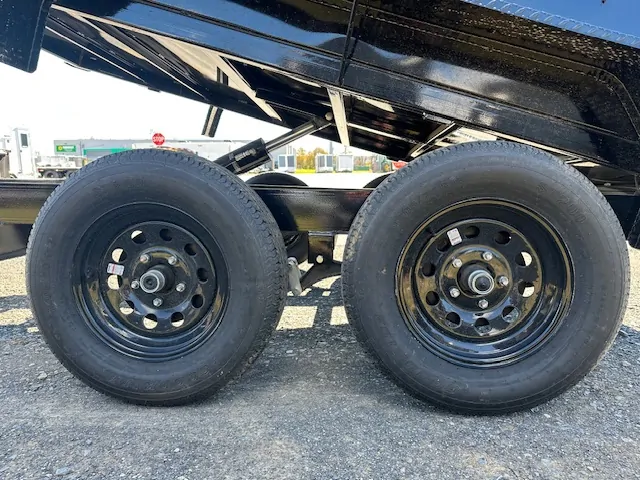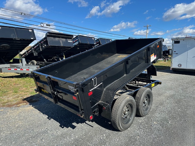 This 5-foot-by-10-foot dump trailer for sale comes with 3,500-pound leaf spring axles, helping you take full advantage of the trailer’s carrying capabilities, and the ST205/75/R15 radial tires to give you a smooth and steady ride. The A-frame coupler is 2 5/16 inches. A battery box, tarp kit brackets and stake pockets are also included to help you transport and dump your loads safely.