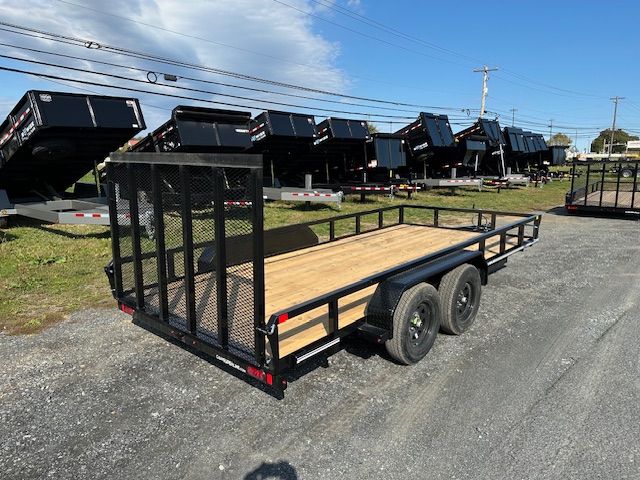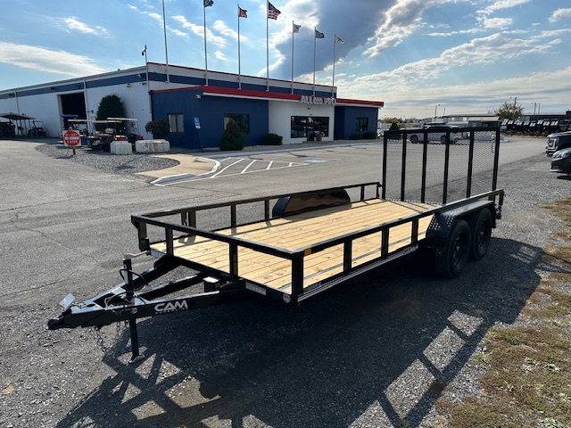 The 7 x 16 landscape utility trailer from CAM Superline is designed to handle your toughest cargo. Loading and unloading onto its deck is made easy with an operator-friendly spring-assisted rear landscape gate. It also features an 81-inch wide by 16-foot long wooden deck supported by 13-inch side rails and stake pockets to ensure your cargo is securely tied down. This trailer uses a robust A-frame jack and two 5/16-inch couplers to haul loads up to 5,060 pounds.