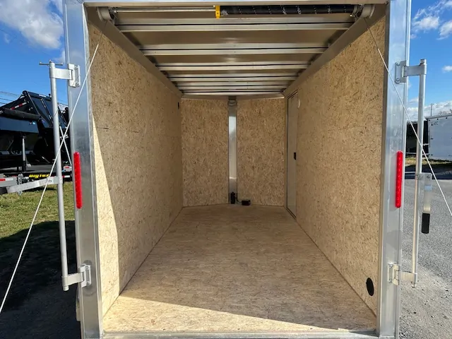 The 6 x 12 aluminum enclosed trailer provides straightforward loading and unloading with its rear ramp door and gives you options for transportation with its 2035-pound load capacity. You’ll also easily attach this trailer with its 2-inch ball coupler and its hefty A-frame tongue to give you a strong connection you can trust. Transporting your belongings will become a breeze when you buy your own Cargo Pro V Nose Aluminum Enclosed Trailer.