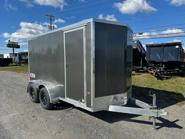 The 6 x 12 aluminum enclosed trailer provides straightforward loading and unloading with its rear ramp door and gives you options for transportation with its 2035-pound load capacity. You’ll also easily attach this trailer with its 2-inch ball coupler and its hefty A-frame tongue to give you a strong connection you can trust. Transporting your belongings will become a breeze when you buy your own Cargo Pro V Nose Aluminum Enclosed Trailer.