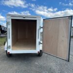 The rear barn door solution has a spring axle with a 2,000-pound capacity, 175/80/D13 bias tires and a 2-inch coupler. The interior luggage compartment height is 46 inches, with an overall height of 68 inches for easy clearance on the road. The trailer also features durable, lightweight Luan walls, a ¾ inch plywood floor and LED lights. The trailer doesn’t include a side door or brakes.