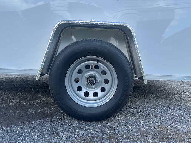 The exterior of the trailer is covered in protective aluminum from top to bottom, including the fenders. Inside, thick plywood adds extra insulation and security. Covered Wagon’s convenient rear door design takes up the entirety of the rear wall so it can fold down into a loading ramp, and the side door near the front of the trailer allows you to reach things you’ve stashed away without unloading all your cargo. With its 78-inch interior height, this model offers plenty of room to maneuver inside.