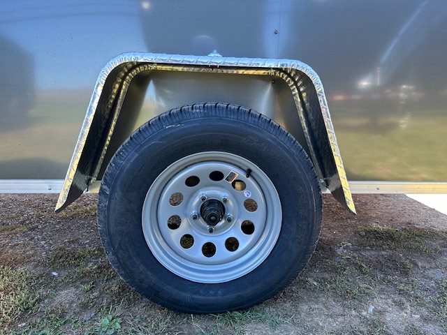 The exterior of the trailer is covered in protective aluminum from top to bottom, including the fenders. Inside, thick plywood adds extra insulation and security. Covered Wagon’s convenient rear door design takes up the entirety of the rear wall so it can fold down into a loading ramp, and the side door near the front of the trailer allows you to reach things you’ve stashed away without unloading all your cargo. With its 78-inch interior height, this model offers plenty of room to maneuver inside.